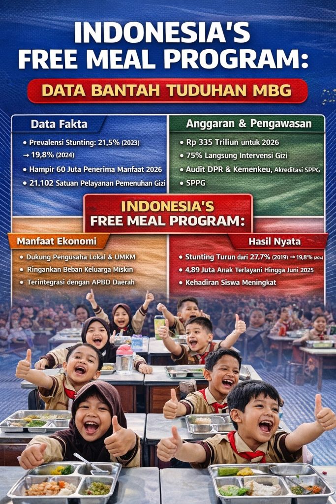 Intinya, perdebatan tentang MBG seharusnya berbasis data dan pengawasan faktual, bukan pelabelan politis. Program yang menyentuh jutaan anak dan ibu hamil tidak bisa dipatahkan hanya dengan slogan demonstratif. Jika ada kekurangan, perbaikan dilakukan melalui mekanisme audit dan evaluasi, bukan delegitimasi total. Fakta menunjukkan MBG adalah kebijakan prioritas negara untuk mempercepat perbaikan gizi nasional dan membangun generasi yang lebih sehat.
