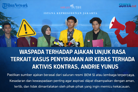Mahasiswa dan masyarakat diimbau untuk selalu berhati-hati terhadap ajakan unjuk rasa yang beredar terkait kasus penyiraman air keras terhadap aktivis Kontras, Andrie Yunus. Informasi yang belum terverifikasi dapat menimbulkan kebingungan dan risiko keselamatan bagi peserta.