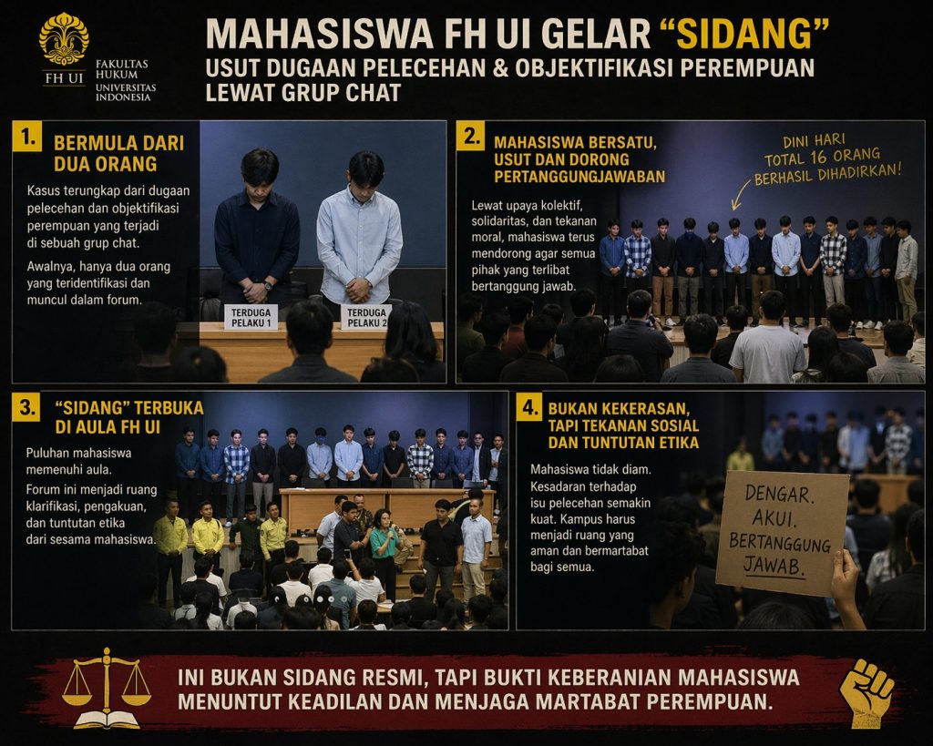 Tindakan para pelaku ini bukan sekadar “kenakalan mahasiswa biasa”. Ini adalah refleksi dari masih kuatnya budaya patriarki yang beracun di lingkungan akademis. Melakukan objektifikasi terhadap rekan sendiri dalam grup privat adalah bentuk pengkhianatan terhadap nilai-nilai hukum dan kemanusiaan yang mereka pelajari setiap hari di bangku kuliah.